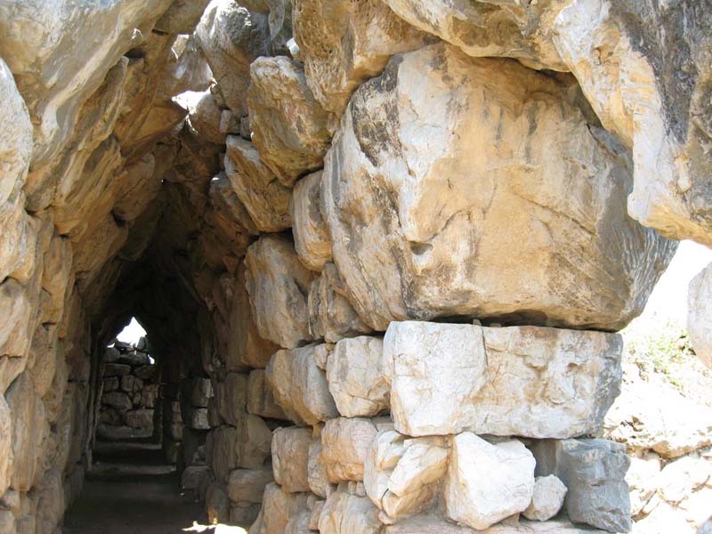 El surgimiento de los palacios en Micenas (yacimiento epónimo que da nombre a todo este marco cultural) se cree debido a la fuerte influencia de Creta, con la cual se observan innumerables paralelismos en la arqueología y el arte. Sin embargo, el micénico posee una fuerte personalidad. De entrada, cuando en torno al siglo XIV a.e. aparecen los primeros palacios, la mayoría de los arqueológicamente conocidos (Micenas, Tirinto, Atenas, Gla…) surgen como ciudadelas fortificadas, dotadas de un gran aparato defensivo, lo que las hace fácilmente identificables. Algunos de sus muros alcanzan hasta los 7 m. de grosor, permitiendo la construcción de casamatas en su interior (especie de túneles en falsa bóveda). También disponen de poternas, que son “salidas traseras” a través de las gruesas murallas con cubierta de falsa cúpula, como las de las casamatas o las de los túneles que conducen a depósitos de agua exteriores al recinto.