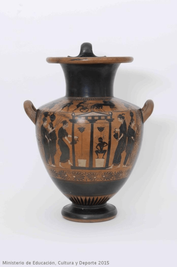Allí, en el gineceo, se situaba, como decimos, el lugar reservado a la gyné, como se denominaba a la «mujer propiamente dicha» (la esposa), frente a otros tipos de mujeres, como la parthenos (la chica virgen que se prepara para el matrimonio), o la de clase social inferior, cuya honra no se reñía con el trabajo en el campo o en el taller de los hombres (y, por tanto, no vivía en casas con gineceo). Estaba también aquella otra, mujer desamparada que, sin la tutela de un padre y el apoyo de una familia, sino acaso bajo la explotación de un proxeneta, se veía abocada a la prostitución, bien como prostituta callejera (porné), bien como prostituta cortesana (hetaira).