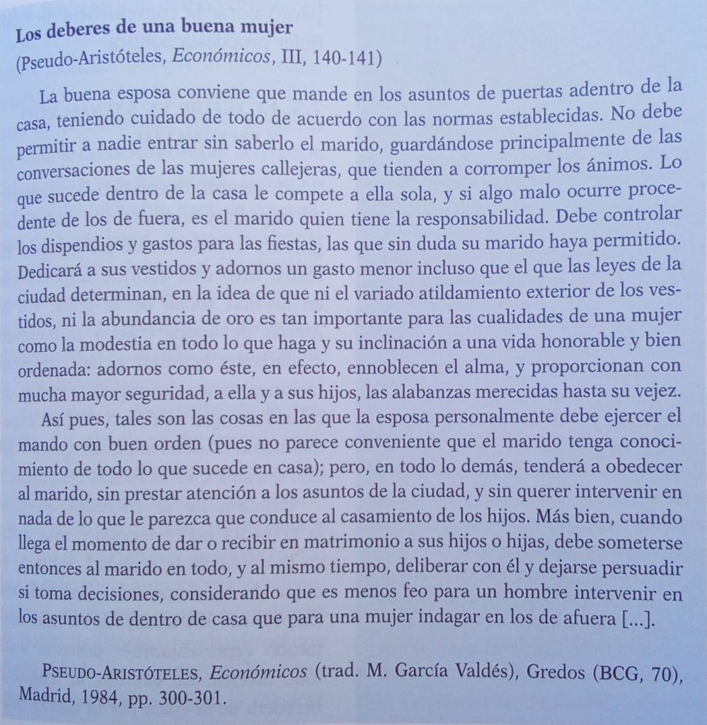 [Sobre la mujer en la época clásica, Tema 7 del manual]